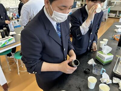 2/4(水)、2Kの授業でソーダ作りをしました。炭酸を強くしすぎて容器から吹き出したり、レモン汁の量を調整しておいしくしたり、、、試行錯誤しながらおいしく化学を学びました。