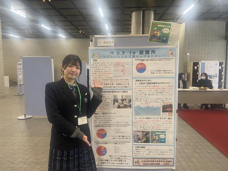 受賞生徒は、「Realize(総合的な探究の時間)」の授業の一環として、災害からペットを守りたいという思いから、安全なペット同行避難を実現するための活動に取り組みました。