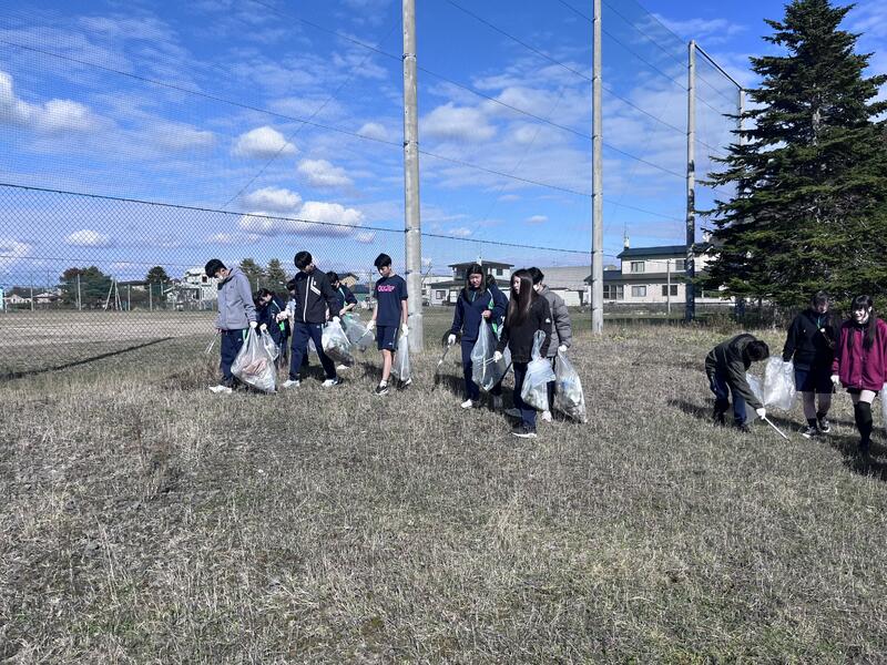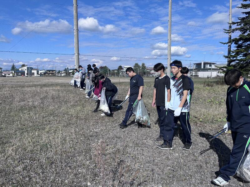 今シーズンのグラウンドでの体育が終了しました。今回、最後の屋外体育授業にてグラウンド周辺のゴミ拾いを行いました。