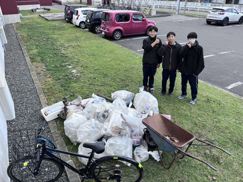 複数の班に分かれて効率よく、たくさんのゴミを回収することができました。来年度の屋外体育授業も全員で頑張りましょう!