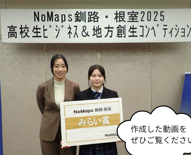 受賞生徒は、「Realize(総合的な探究の時間)」の授業の一環として、厚岸町の魅力を海外にも伝えたいという思いから、夏休み期間中にJR札幌駅で街頭調査を行ったり、放課後も自らPR動画の素材を撮影しに行ったりするなど、主体的に探究活動に取り組みました。