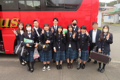 本校 吹奏楽部が10月1日(水)~10月2日(木)に行われる高文連全道大会の会場である稚内に向けて出発しました。9月29日には、表彰伝達式にて校長より表彰を受けました。